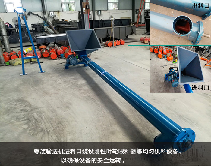 (2)因而須在螺旋輸送機(jī)進(jìn)料口裝設(shè)剛性葉輪喂料器等均勻供料設(shè)備,以確保設(shè)備的安全運(yùn)轉(zhuǎn)。